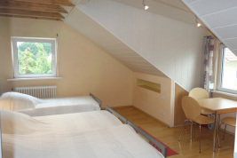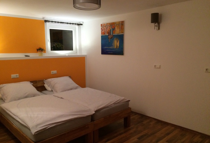 Die Einliegerwohnung befindet sich im Soutterain des Gästehauses. Der Wohnraum verfügt über eine integrierte Küche, ein separates Bad/WC, einen ausziehbaren Esstisch sowie zwei funktionable Sofas. Das Soutterain vermieten wir auf Anfrage auch separat zum Gästehaus.
